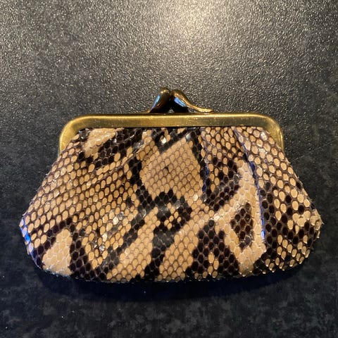 Mærket er ukendt (men kunne ikke rette det) Den er købt i udlandet i 50'erne. Matriale, aligator. Find standen både udvendig såvel som indeni.
