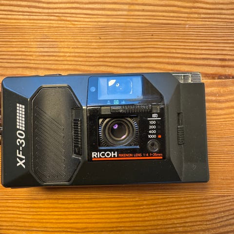 Ricoh point and shoot filmkamera. Der medfølger manual og org. taske. Kameraet er testet og fungerer optimalt.
