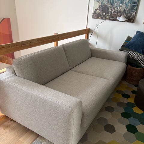 Vi sælger vores sovesofa fra Bolia grundet ændring i behov og plads. Vi har brugt den som gæsteseng og som sofa i stuen. Den er i super fin stand og efter en kærlig klud ser den ud som ny. Super nem at slå ud når man skal bruge den til at sove i. Man er velkommen til at komme og se den. Og prisen er til forhandling eftersom vi gerne vil købe nyt inden længe.