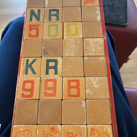 LEGO klodser, „No 500", i original æske, Danmark, 1940'erne.