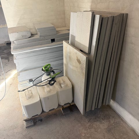 ∙ 7 stk. hele SkamoWall Board + rester, 50mm tykke, 61x100cm