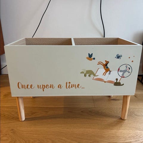 Bogkasse i træ til børn. Den fejler intet og er fra et dyre- og røgfrit hjem.