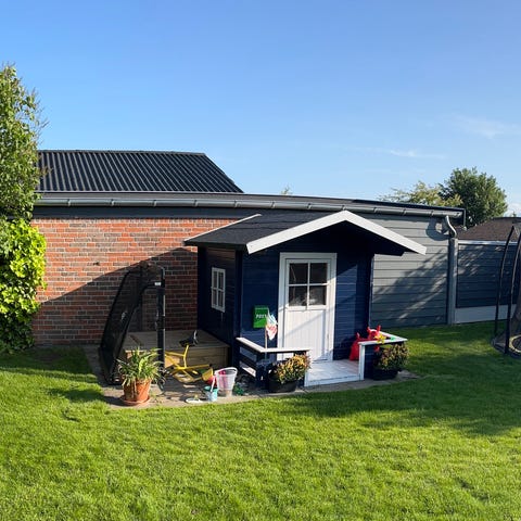 Legehus i tekstil fra Win Green - Fairy Cottage Playhouse, i lyserød og lilla, er kun brugt indendøre men kan også bruges ude om sommeren.