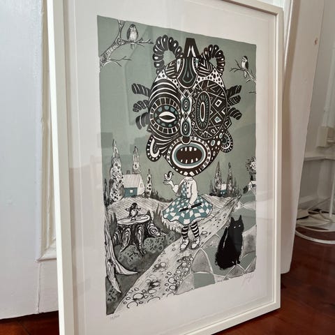 Original tegning af Julie Nord. Professionelt indrammet med passepartout i fin sort ramme. Rammemål: 30x38 cm