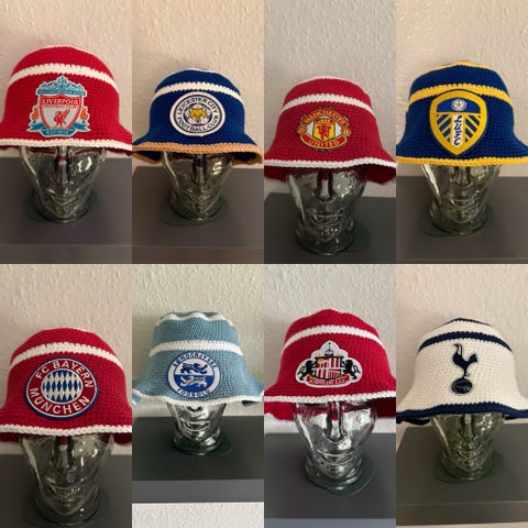 Fodboldhat udformet som en rød og hvid fodbold med påsyede horn. Hatten er i blødt stofmateriale og har skygge foran. Lang rem med små klokker gør, at hatten kan spændes eller hænges op. Velegnet som udklædning eller til brug ved fodboldkampe og andre sportsarrangementer i rød-hvide farver.