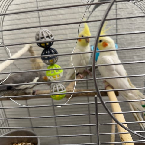 Vi har for nyligt reddet Tekop (hvid) og Pixie (gul) fra et upassende hjem, og vil gerne have dem videre til nogen der kan passe godt på dem, da vi ikke har plads til flere nymfer selv.