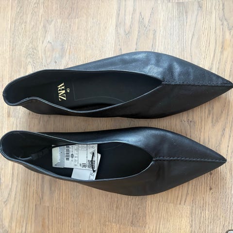 Zara ruskind ballerina sko i str. 40. Skoene er i en sennep farve med spids snude og flad sål.
