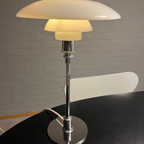 Kromstel og mundblæst opalglas. 30 cm i diameter. Velholdt designklassiker.