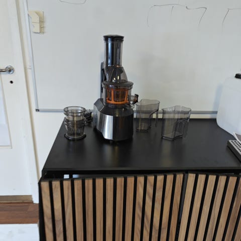Juiceren har en stærk motor, det går hurtigt at presse og den er nem at rengøre.
