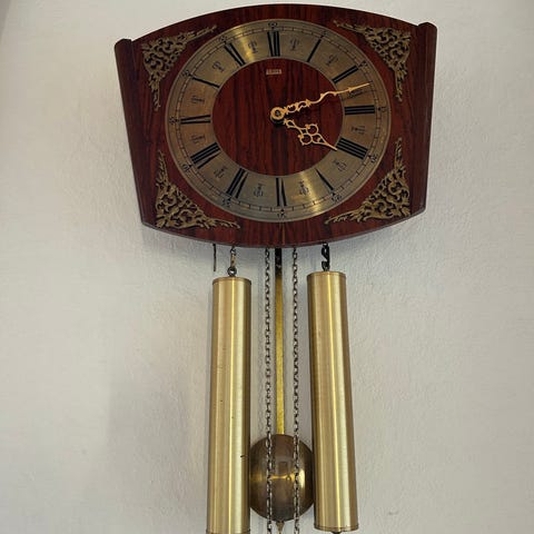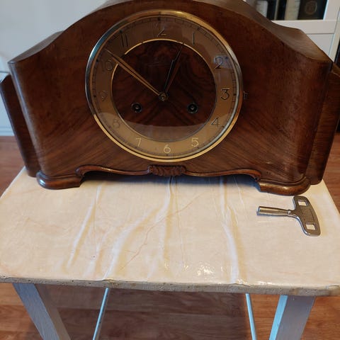 Th. Jørgensen mekanisk bordur i træ med optræksnøgle. Uret har et klassisk kabinet i træ med dekorative metalbeslag og små metalfødder. Skiven har romertal og mekanisk værk, der trækkes op med den medfølgende nøgle. Indvendigt ses mærkat fra Th. Jørgensen, Helsingør, som urforhandler. Velegnet som bord- eller hyldeur i stue, kontor eller andre opholdsrum.