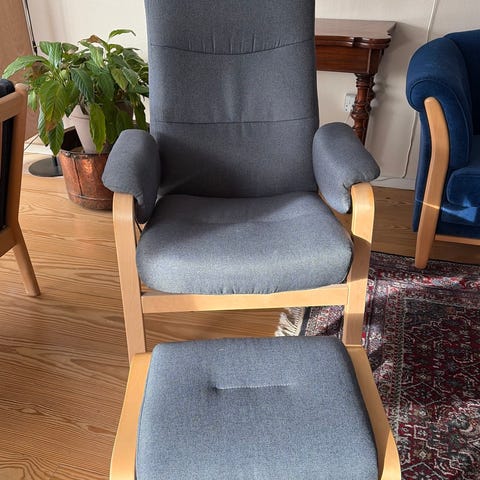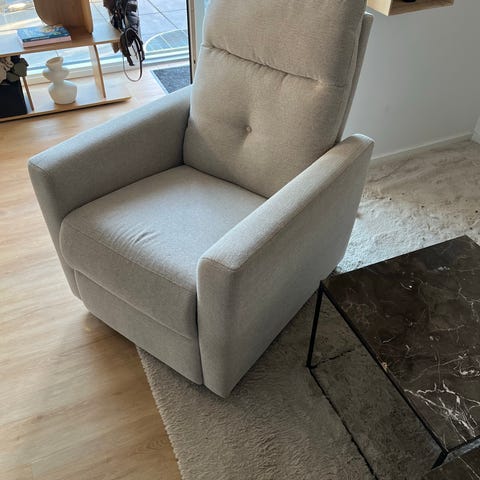 Recliner stol lavet som alm. lænestol med almindelige ben, hvilket gør den til en let og pæn stol at have stående.