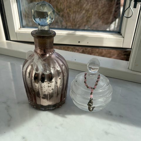 Flaconer, Flaconer i hvid og lilla, prisen er pr. stk.