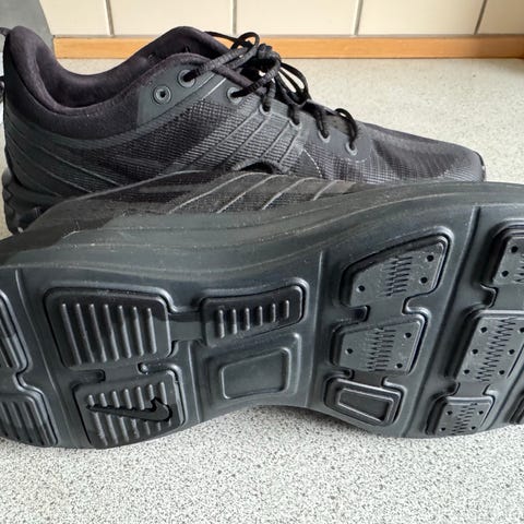 Nike Flex TR 6 træningssko i størrelse 40,5. Skoen er sort med hvid Nike-logo og hvid sål. Overdelen er i let og åndbart mesh med snørelukning. Modellen er designet til fitness og indendørs træning med fleksibel sål, der giver bevægelighed ved forskellige øvelser. Velegnet som træningssko til hverdagsbrug i fitnesscenter eller anden indendørs sport.