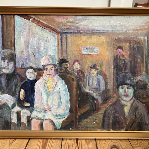 Ernst Goldsmith Maleri med togmotiv i træramme