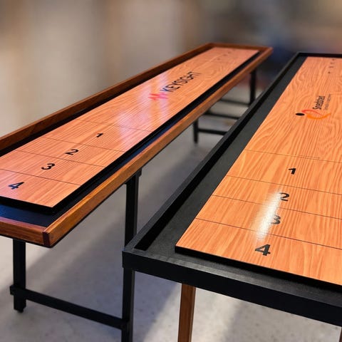 Shuffle Ball Standard spilleplade i grøn plast. Sættet består af en aflang spilleplade med felter markeret 1, 2 og 3 samt tilhørende kugler/bolde i forskellige farver. Der medfølger stofpose til opbevaring af kuglerne samt brugsanvisning. Velegnet som bordspil eller gulvspil til flere spillere.