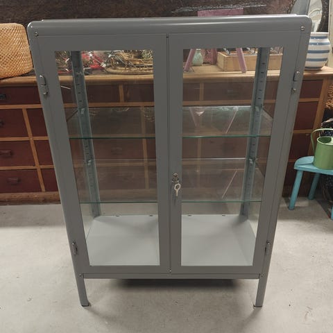 Grøn baggrund og sorte ben og kanter . Der er 3 glashylder alt er intakt . Skal være 2 til at bærer.