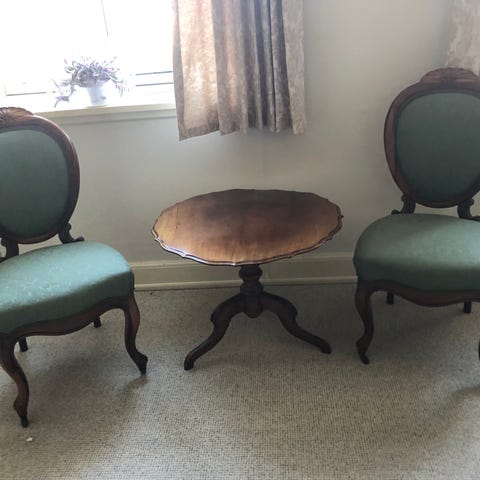 Ukendt mærke antik sofa og rundt sofabord træ