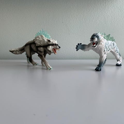 Schleich fantasydyr figurer sæt. Sættet består af to skygge fantasydyr med lilla detaljer, udformet som realistiske dyrefigurer.