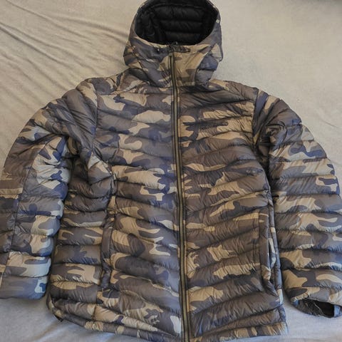 Peak Performance dunjakke til herre i størrelse XXL. Jakken er sort og fyldt med dun, hvilket giver let isolering. Den har gennemgående lynlås foran og quiltet design med vandrette og skrå syninger. Velegnet som yderjakke i overgangsperioder eller som mellemlag under en skaljakke i koldere vejr.