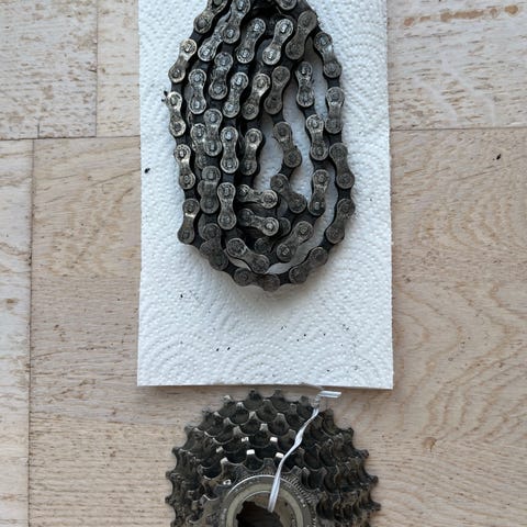 Aldrig brugt. Taget af ny cykel for at skifte til bjerg gearing.