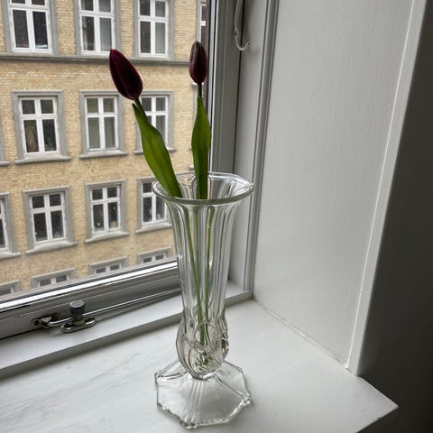Vase, ALDRIG BRUGT. Flot dekorativ vase i glas med blomstermotiv sælges.