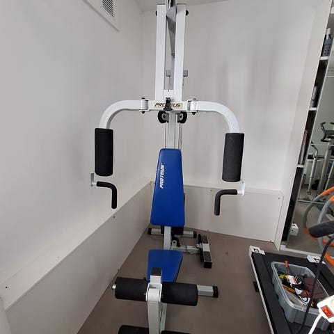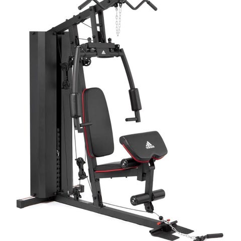 Body Sculpture multigym træningsstation i sort og rød. Kompakt kabel- og vægtstakbaseret hjemmetræningsmaskine med polstret sæde og ryglæn. Udstyret med arm-/brystpres, lat pull-down og benmodul til forskellige styrkeøvelser for hele kroppen. Egnet til indendørs brug i hjemmegym eller garage. Næsten ikke brugt af mig men har stået i garagen i ca. 2 år alt tilbehør. Medfølger