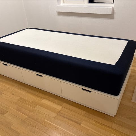 IKEA NORDLI sengestel med opbevaring i størrelse 90x200 cm i hvid. Sengen har indbygget opbevaring i form af skuffer under liggefladen, som giver ekstra plads til fx sengetøj eller tøj. Sengestellet har lamelbunde og er velegnet til en enkeltmadras i målene 90x200 cm. Designet er enkelt og funktionelt, egnet til soveværelse, gæsteværelse eller børneværelse.