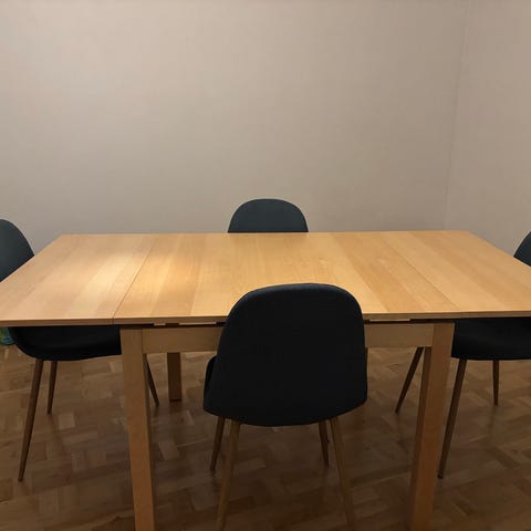 IKEA spisebord af træ med udtræk, virker som det skal har lidt brugsspor.