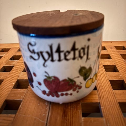 Søgeord: Retro, heaktræ, teaklåg, keramik, Knapstrup, mel, salt, køkkenrulle.