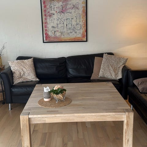 Brugt sofabord, skovby. Meget flot og robust. Bordpladen trænger til en let slibning