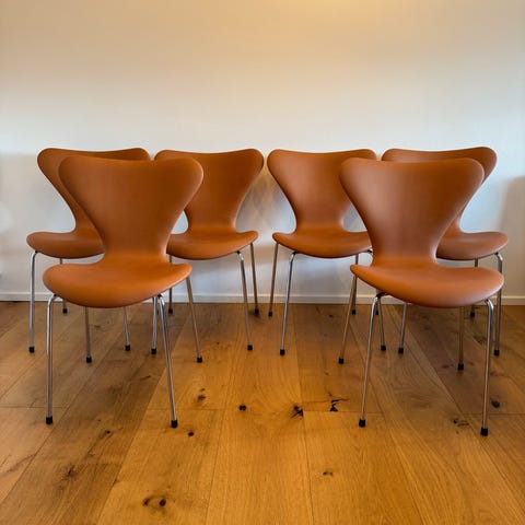 5 stk. 7’ Fritz Hansen Arne Jacobsen stol i sort læder.