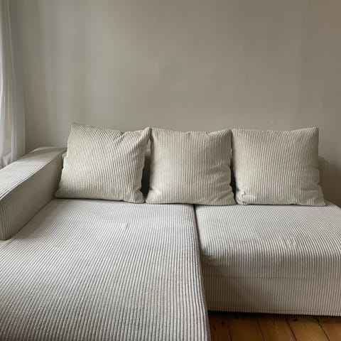 Mål: 200cm bred cirka og chaiselongen er 160cm dyb