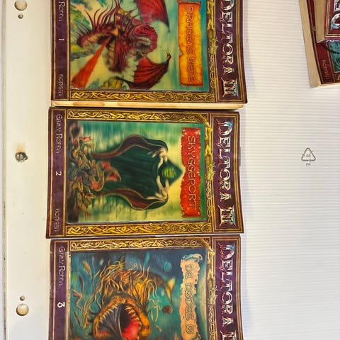 Deltora Deamoners Dal bøger på dansk. Serien er udgivet af Borgens Forlag, 1. oplag 2003. Bøgerne er fantasyromaner for børn og unge og følger et sammenhængende eventyrunivers. Velegnet til læsere, der kan lide illustrerede fantasyfortællinger i serieform. Sælges som samlet sæt.