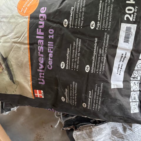 Flisefugesæt, Flisefugesæt indeholder det, du skal bruge til flisearbejdet. Med 20 liter spand, rulleindsats, flisefugebræt med sort gummi og flisefugebræt med opskåret svamp. Begge fugebrædder er med håndtag, så du har et godt greb. Brugt en gang. Nypris 170 kr