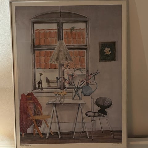 Plakat med abstrakt vinglasmotiv i træramme