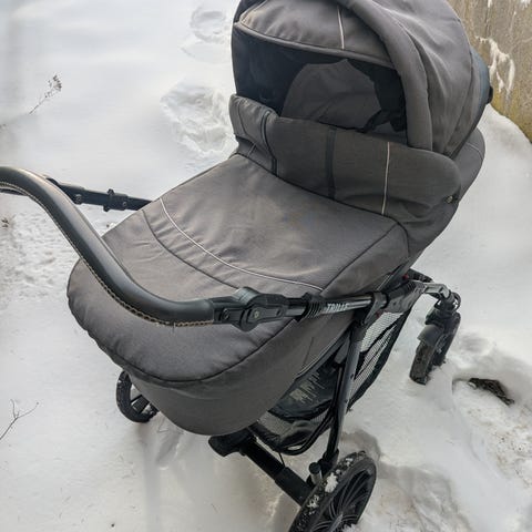 Helt ny rygstøtte medfølger samt madras og myggenet/solskærm.