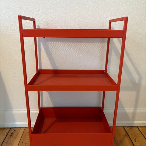 Rullevogn med udtrækshylder, i pulverlakeret metal.