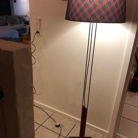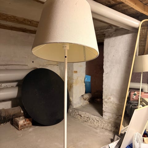 Fin Ikea “hænge” standerlampe med hvid lampeskærm.