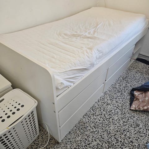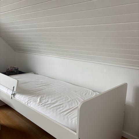 Sengestellet og madrasserne er brugt og har derfor lidt brugsspor.
