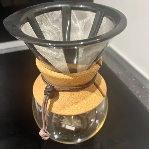 Bodum pour over kaffebrygger i glas med sort plastfilter og holder. Manuel kaffebrygger, hvor vand hældes direkte over kaffen i det genanvendelige filter. Glaskaraflen er gennemsigtig, så brygningen kan følges. Velegnet til brygning af filterkaffe i mindre portioner i hjemmet eller på kontoret. 1,0 liter