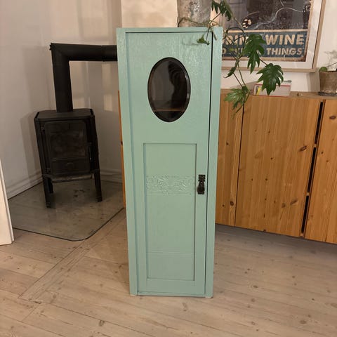 Gammel, vintage karlekammerskab med 2 glashylder.