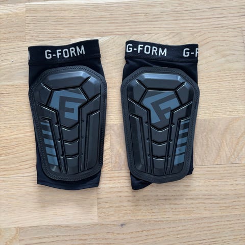 G-Form knæbeskyttere i størrelse large. Modellen er i sort med hårde beskyttelsesplader foran og elastisk tekstil bagpå. Beskytterne har elastisk kant med G-Form logo og er designet til at sidde tæt omkring knæet. Velegnet til sportsaktiviteter, hvor der er behov for ekstra stød- og slagbeskyttelse af knæene.