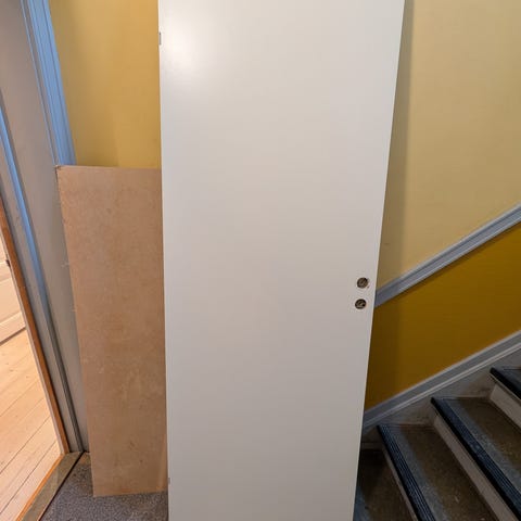 Swedoor dør med karm. Døren fremstår som en indvendig dør og leveres sammen med karm, som ses på billedet. Farven fremstår lys/neutral. Egnet til montering i bolig eller lignende indendørs rum, hvor der ønskes en standard dør med tilhørende karm. 200x85cm.