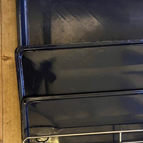 To bageplader gives væk i målene 407mm x 360mm. De passer desværre ikke til min nye ovn. Den ene er dybt og den anden flad.