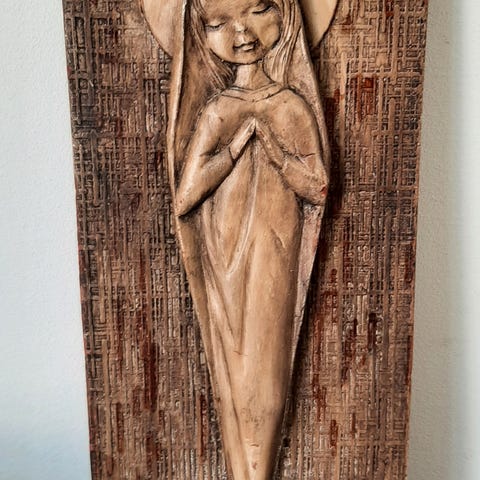 Keramisk relief, Madonnahoved, 3 fisk