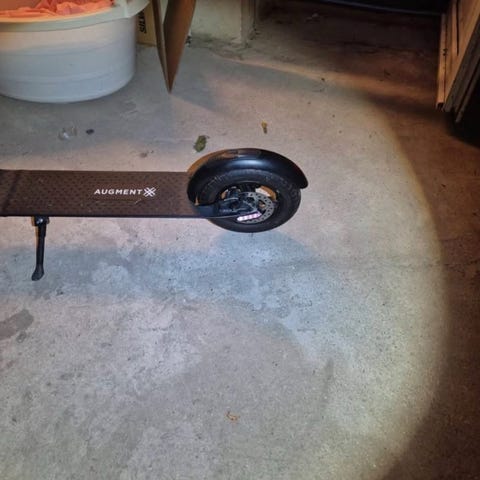 Augment El-løbehjul i sort. Løbehjulet er sammenklappeligt og har digitalt display på styret med visning af hastighed og batteriniveau. Der medfølger oplader og aftagelig batterienhed som vist på billederne. Velegnet til daglig transport på korte og mellemste afstande på asfalt og faste underlag.
