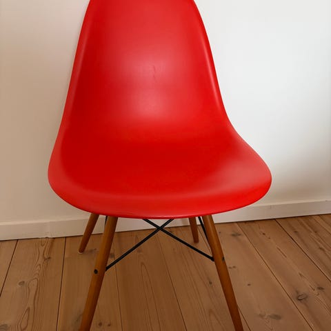 Stolene er fra 2009 og har naturlige brugsspor, men er fuldt funktionsdygtige og komfortable. Den tidløse Eames-design gør dem nemme at indrette med, og de er både stabile og praktiske i daglig brug.
