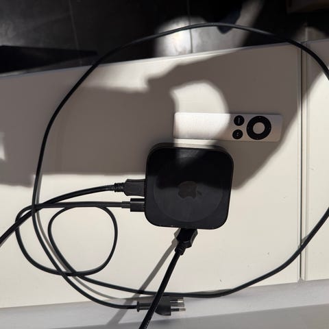 Apple TV A1427 medieafspiller i sort. Enheden tilsluttes tv’et via HDMI og giver mulighed for streaming af indhold fra kompatible tjenester og Apple-enheder. Understøtter op til 1080p HD-opløsning ifølge. Mangler fjernbetjening.