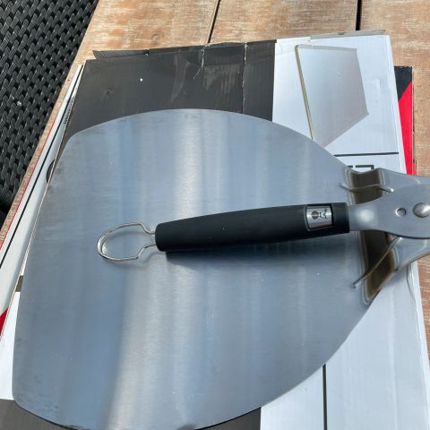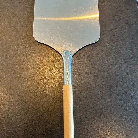 Ooni pizzaspade i aluminium med træhåndtag. Flad, rektangulær spade velegnet til håndtering af pizzaer i pizzaovn eller almindelig ovn. Aluminiumshovedet gør det let at skubbe pizzaen ind og ud af ovnen, mens træhåndtaget giver et godt greb og beskytter mod varme. Egnet til brug i hjemmekøkken og udendørs pizzaovn.