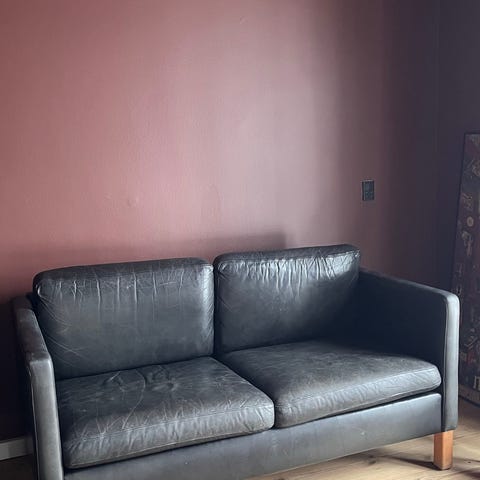 Brun 2-personers sofa i læder. Sofaen har polstrede sæder og ryglæn med to siddepladser samt armlæn i begge sider. Velegnet til stue eller opholdsrum, hvor der er behov for en kompakt lædersofa med plads til to personer.